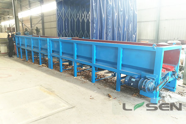 1 采用敞開(kāi)料倉(cāng),可從一頭進(jìn)料,另一頭出料的流水線作業(yè),克服了現(xiàn)有滾筒式剝皮機(jī)停電進(jìn)料,出料,分段式工作方式的缺點(diǎn),工作效率高。