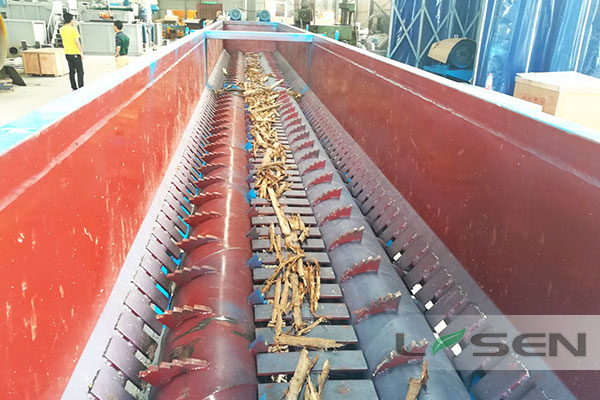 ? ? ?剝皮機(jī)是利用帶剝皮齒牙的轉(zhuǎn)子所產(chǎn)生的獨(dú)特作用力,使木段在料倉(cāng)槽板內(nèi)周而復(fù)始的循環(huán)運(yùn)動(dòng),而且還繞木段自身軸線做回轉(zhuǎn)運(yùn)動(dòng),以及不規(guī)則的跳動(dòng)。至此木段與齒牙,木段與木段,木段與倉(cāng)槽之間不停的摩擦,撞擊,擠壓,樹(shù)皮快速被分離,達(dá)到高效剝皮效果。